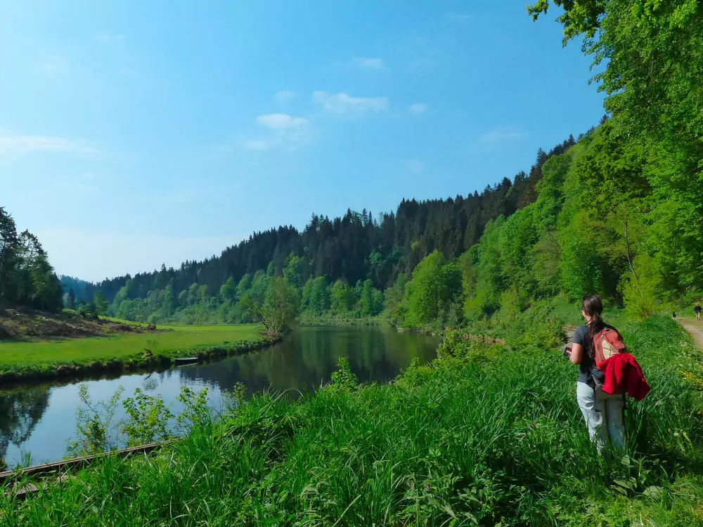 Wir starten auf der Südvariante des Goldsteigs. Diese Etappe führt uns im herrlichen Tal der Ilz durch Wald und entlang des Flusses bis nach Passau. Wir passieren den Ilztalstausee und durchqueren einen ehemaligen Trifttunnel. Durch das Naturschutzgebiet Halser Ilzschleifen steigen wir hinauf zur Veste Oberhaus (400 m). Die Festung thront hoch über Passau und gewährt uns einen herrlichen Blick auf die Stadt (GZ: ca. 4 Std., + 120 m, - 100 m).