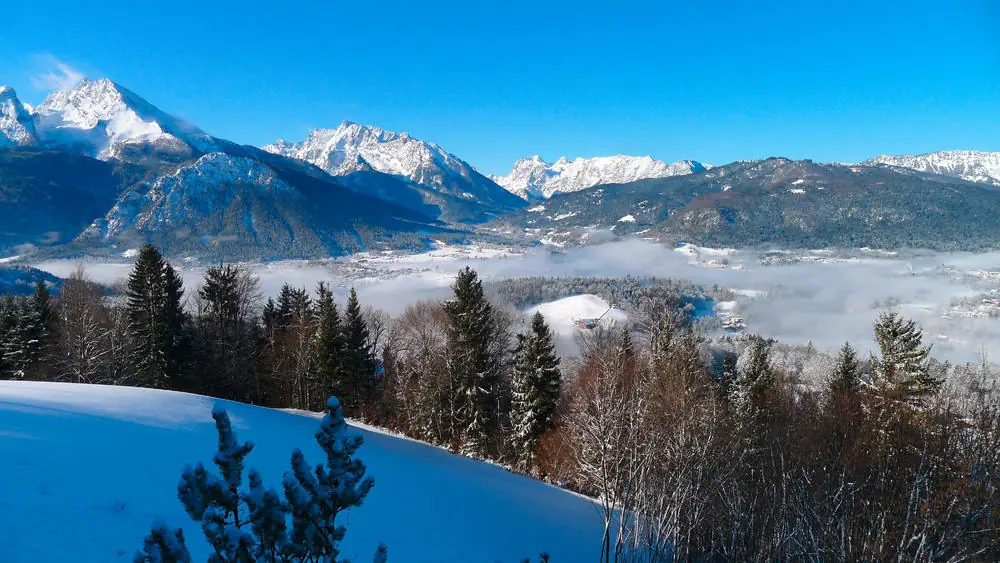 Auf unserer heutigen Wanderung erfreuen wir uns beim Aufstieg zur Kastensteinerwand am Ausblick über die verschneite Berglandschaft. Vorbei an der Kälbersteinsprungschanze erreichen wir wieder Berchtesgaden. Stadtrundgang durch die Altstadt mit Schloss und Markt (GZ: 3-4 Std., +/- 400 m).