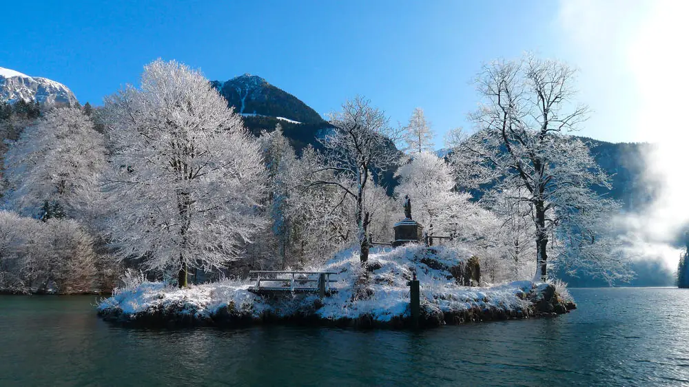 Einstiegswanderung zum malerischen Königssee durch verschneite Wälder (GZ: 2-3 Std., +/- 230 m). Am Nachmittag fakultative Bootsfahrt zur Wallfahrtskapelle St. Bartholomä.