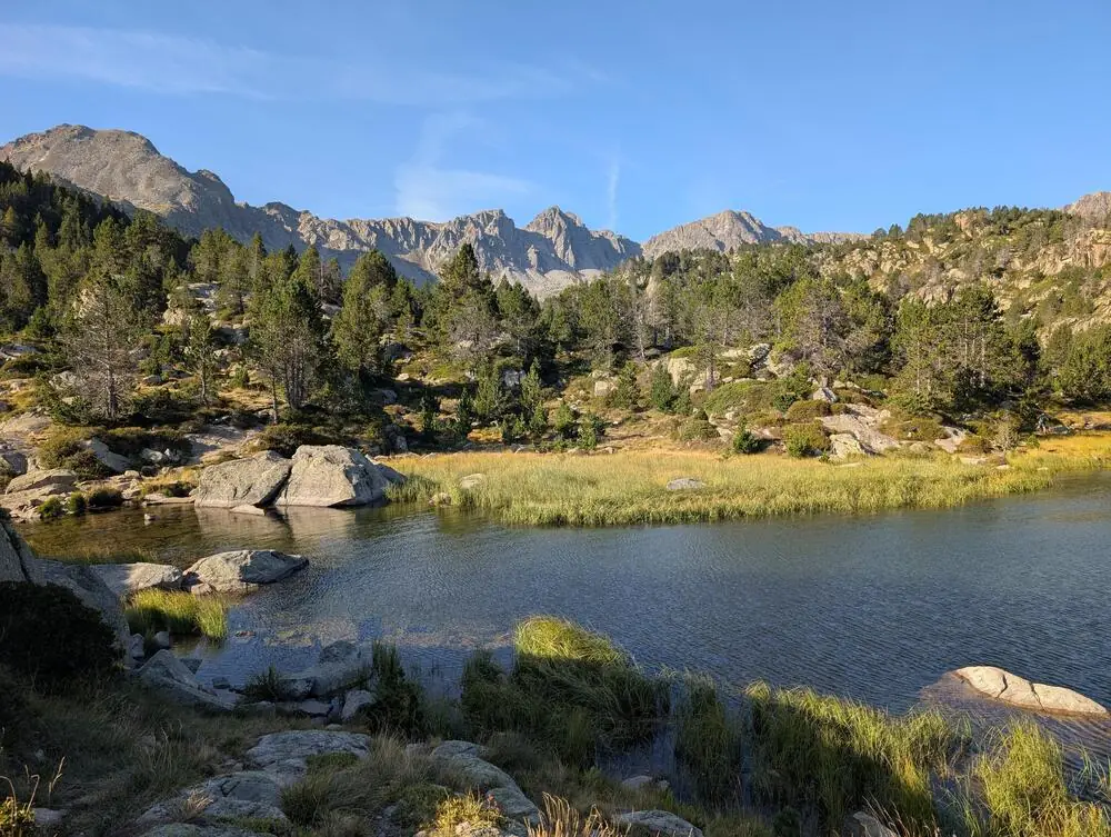 Direkt in Soldeu beginnt ein von Rhododendren umsäumter Bergpfad. Durch schattigen Kiefernwald und über alpine Wiesen wandern wir bis zum kristallklaren Bergsee von Siscaró. Nach einer Rast erreichen wir den Pas de les Vaques, der uns einen herrlichen Blick auf die Bergkulisse Andorras bietet. Mit etwas Glück sehen wir auch Gämsen und Murmeltiere (GZ: 6 Std., +/- 750 m).