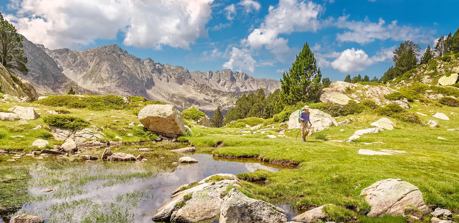 Warst du schon einmal in Andorra? Nein? Dann wird es höchste Zeit! Die unberührte Berglandschaft mit stillen Hochtälern, schroffen Gipfeln, kristallklaren Bergseen, alpiner Flora, friedlich weidenden Kühen und Pferden bietet uns unvergessliche Naturerlebnisse. Abends genießen wir den Komfort unseres Berghotels. Entdecke mit uns den kleinen Staat im Herzen der Pyrenäen!