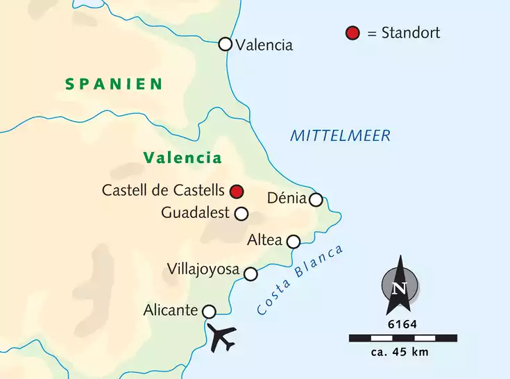 Flug nach Alicante und Transfer ins ursprüngliche Bergdorf Castell de Castells.