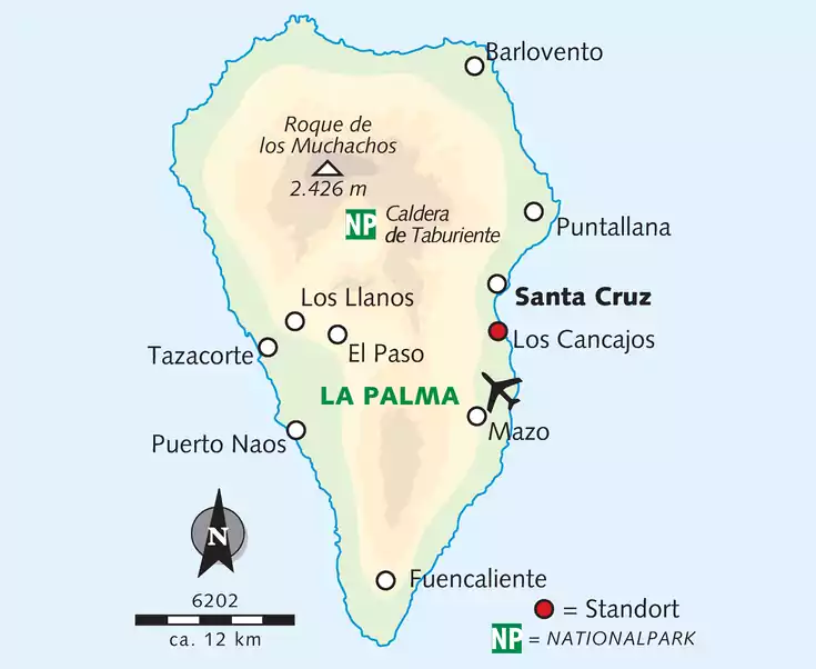 Flug nach La Palma und kurzer Transfer zu unserem Hotel in Los Cancajos.