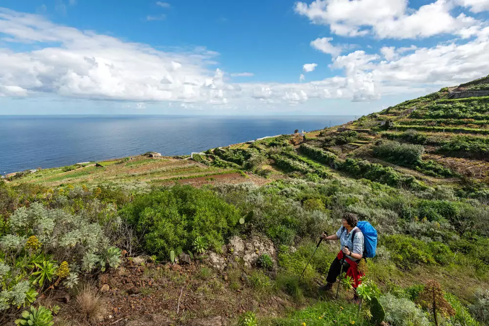 Auf gut begehbaren Wegen wandern wir entlang der beeindruckenden Steilküste und durchqueren einen Barranco. Unterwegs genießen wir immer wieder fantastische Ausblicke auf bizarre Felsen und das wilde Meer. Der Weg endet am aussichtsreichen Mirador de Bartolo (GZ: 3 1/2 Std., + 330 m, - 350 m).