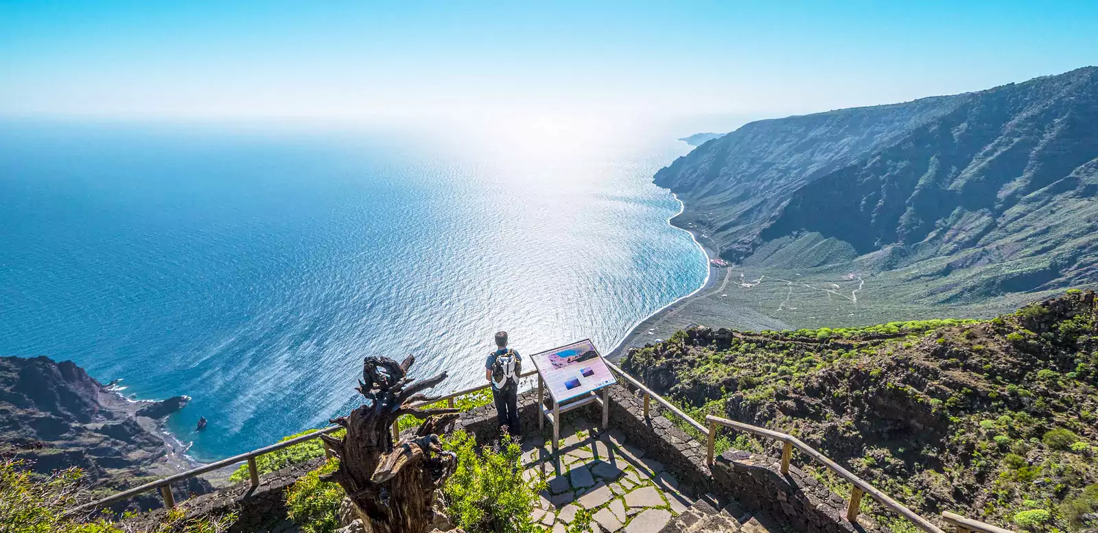 Vom Hotel aus wandern wir über San Andrés zum sagenumwobenen Garoé, dem einstigen Wasserspender der Insel. Weiter geht es auf dem historischen Camino de Jinama, der mit eindrucksvollen Ausblicken auf das Golfo-Tal begeistert. Der Abstieg führt schließlich hinab nach La Frontera, wo unsere Unterkunft liegt (GZ: 6 Std., + 820 m, - 1.000 m).