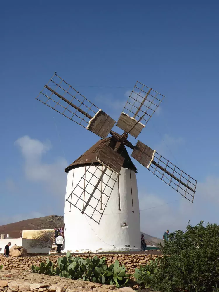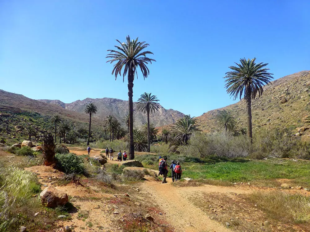 Heute erkunden wir das Inselinnere. Mit dem Bus fahren wir zunächst zu einer Ziegenfarm. Eine kurze Wanderung bringt uns anschließend nach Betancuria, dem wohl schönsten Dorf der Insel. Unterwegs besichtigen wir die Klosterruine San Buenaventura. Von einem Palmental wandern wir danach durch den Barranco de las Peñitas in Richtung Küste. Auf dem Rückweg Einkehr in Villaverde.