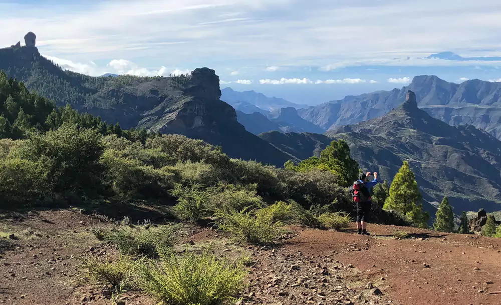 Durch einen Kiefernwald wandern wir hoch zum Campanario (1.930 m). Vom Gipfel genießen wir ein geniales Rundpanorama über das zentrale Hochland mit Ausblicken bis zu den Dünen von Maspalomas im Süden und Teneriffas Teide im Westen. Der nun folgende Königsweg bis zum Mirador de Becerra zählt mit Ausblicken auf die heiligen Felsen Roque Nublo und Roque Bentayga zweifellos zu den schönsten Wanderwegen, die die Kanaren zu bieten haben. Mehr Panorama geht nicht (GZ: 3 1/2 Std., + 300 m, - 400 m)!