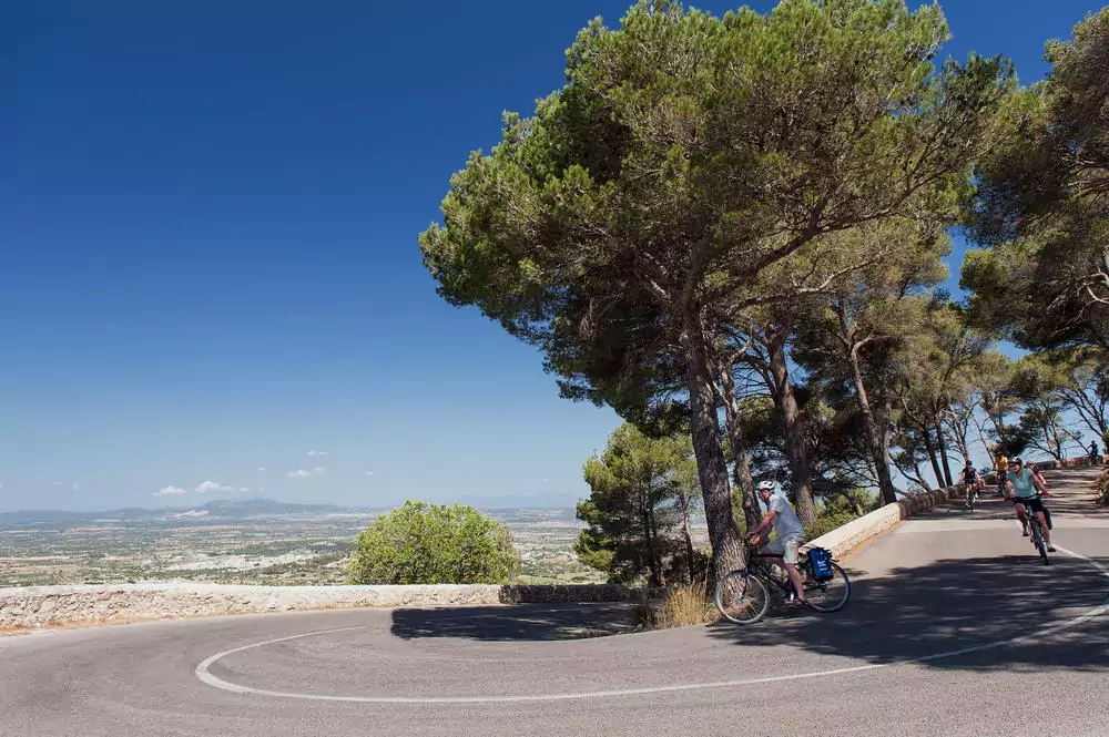 Transfer auf den geschichtsträchtigen und reizvoll gelegenen Klosterberg Randa. Nach einer kurzen Besichtigung geht es mit dem Rad langsam abwärts über Algaida nach Llucmajor mit seinem alten Ortskern und den engen Gassen. Auf kleinen, einsamen Sträßchen radeln wir zurück zum Hotel.