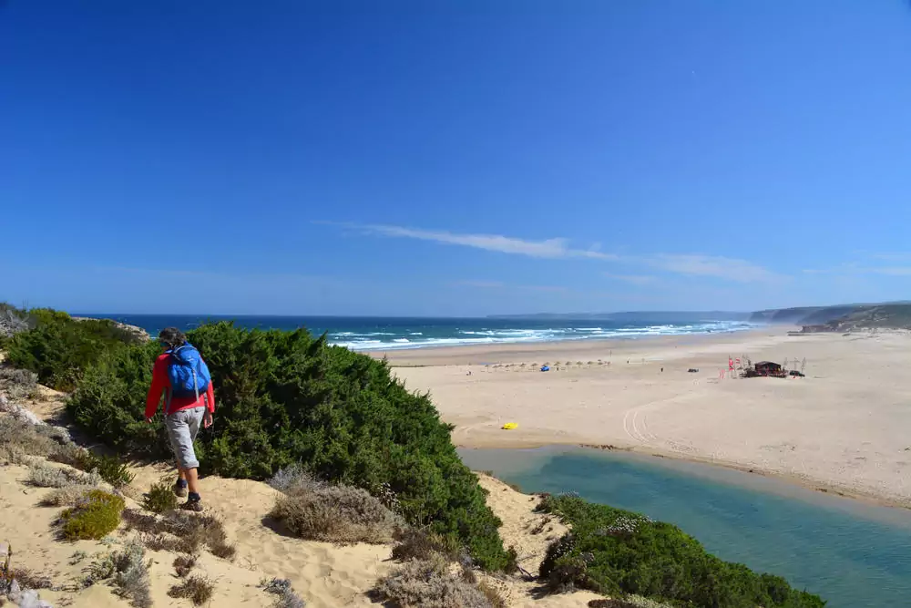 Unsere Rundwanderung beginnt im kleinen Surferdorf Carrapateira und führt uns entlang der Küste zu den bekannten Surfstränden. Ein Postkartenmotiv: der endlose Strand Praia da Bordeira. Auf schmalen Pfaden wandern wir entlang der felsigen Küstenlinie, vorbei an einer großen Wanderdüne und schließlich landeinwärts auf Sandwegen zurück ins Dorf (GZ: 3 1/2 Std., +/- 200 m). Auf dem Rückweg halten wir am Cabo São Vicente, der südwestlichste Punkt des europäischen Festlandes. Ein faszinierendes Schauspiel, wenn sich die Brandung des Atlantiks an den hohen Felsen bricht.