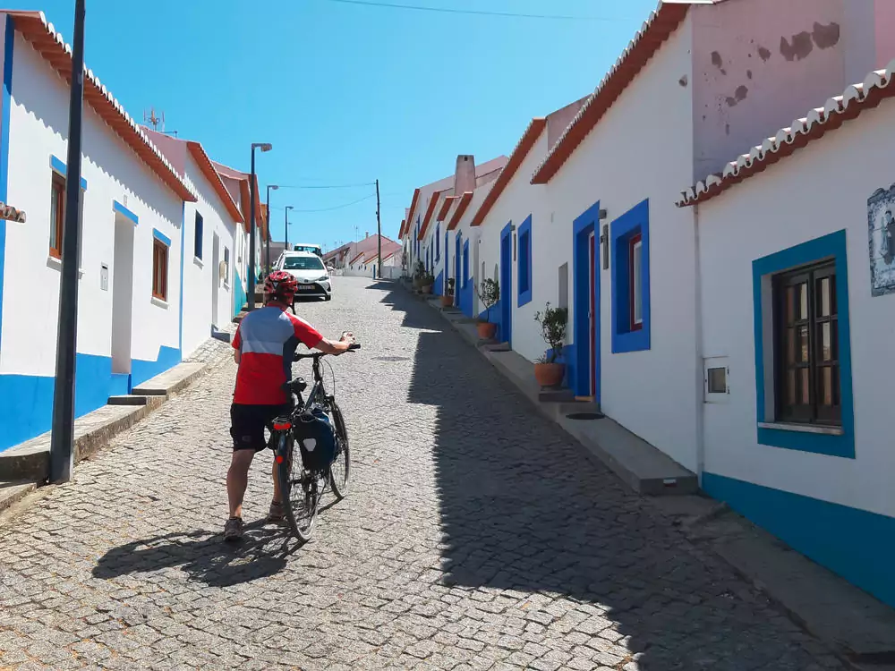 Durch wenig besiedelte Landschaft, die von "Montados", den hier typischen Korkeichenhainen geprägt ist, radeln wir weiter. Bei Alcácer do Sal spüren wir die unmittelbare Nähe des Atlantiks. (1 Ü/F, A)