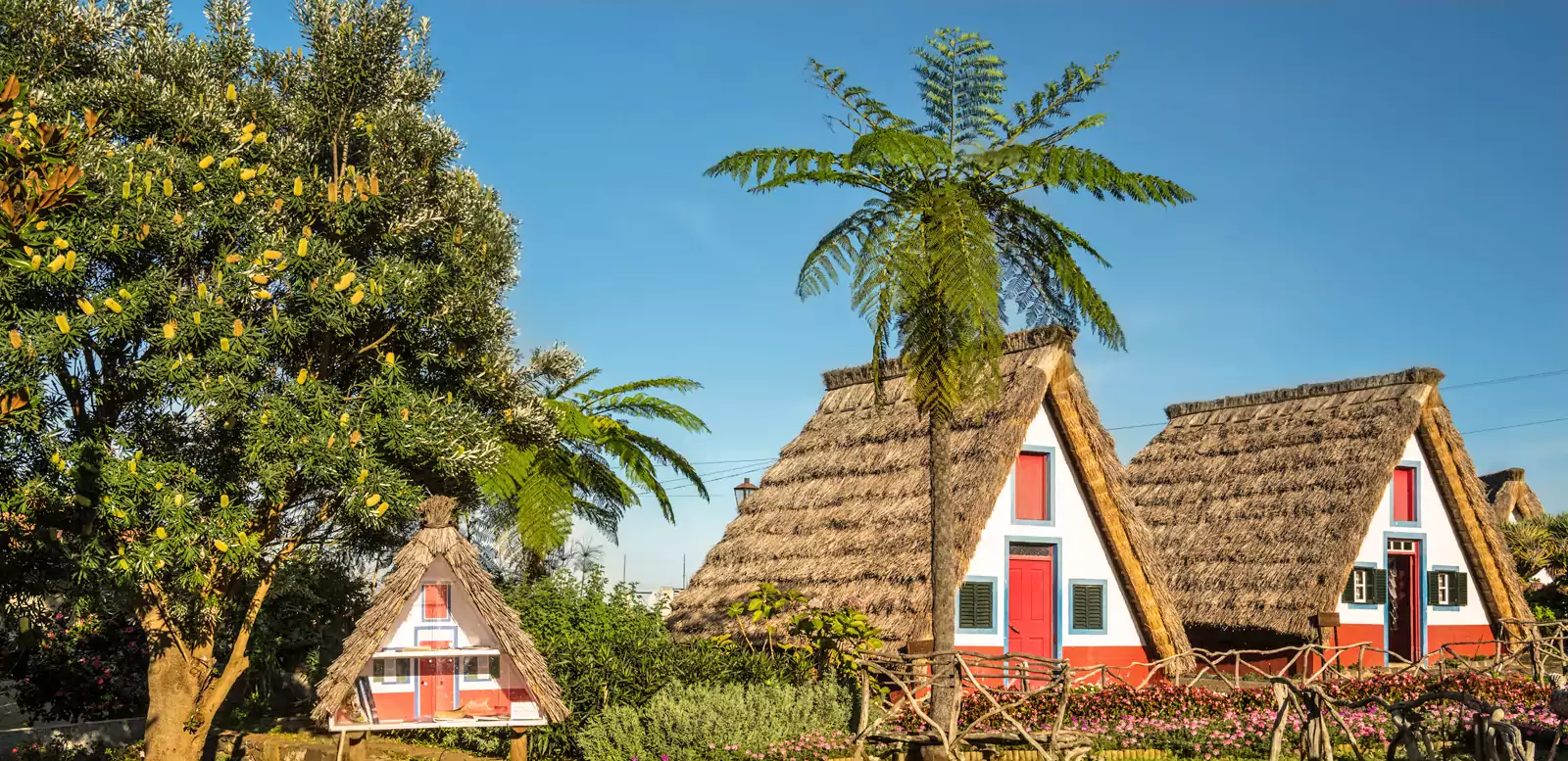 Der grüne Norden verwöhnt seine Wanderer mit prachtvollen Landschaften, deren Bergmassive, Steilküsten, Wälder und Wasserfälle selbst für das an Naturschätzen so reiche Madeira außergewöhnlich sind. Häufig begleiten ihn dabei die Gewässer der Levadas. Sehr malerisch und noch recht ursprünglich ist unser Standort Santana, an der Nordabdachung des Pico-Ruivo-Massivs. Er ist bekannt für seine eigentümlichen strohgedeckten Häuser.