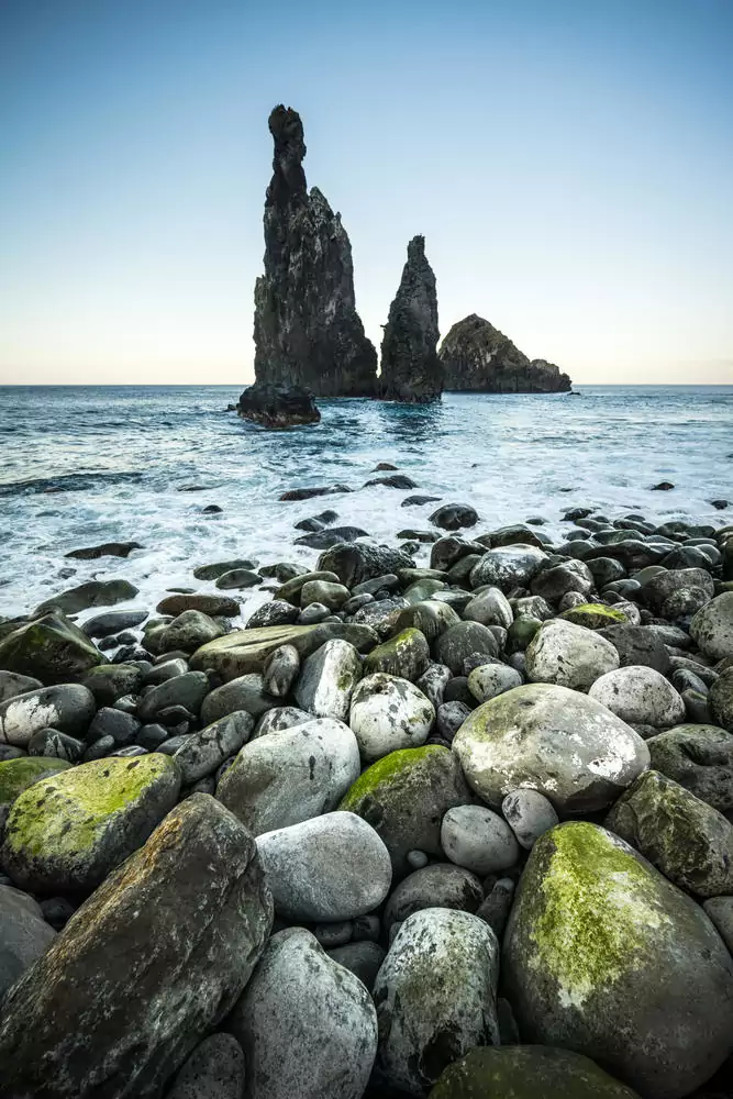 Busfahrt nach Porto da Cruz. Aufstieg zum ehemaligen Weintransportweg von Porto da Cruz nach Machico entlang der Steilküste. Von Machico, der ältesten Ortschaft der Insel, geht es zum östlichsten Punkt der Insel, der Baia-d’Abra-Bucht (GZ: 5 Std., +/- 400 m).