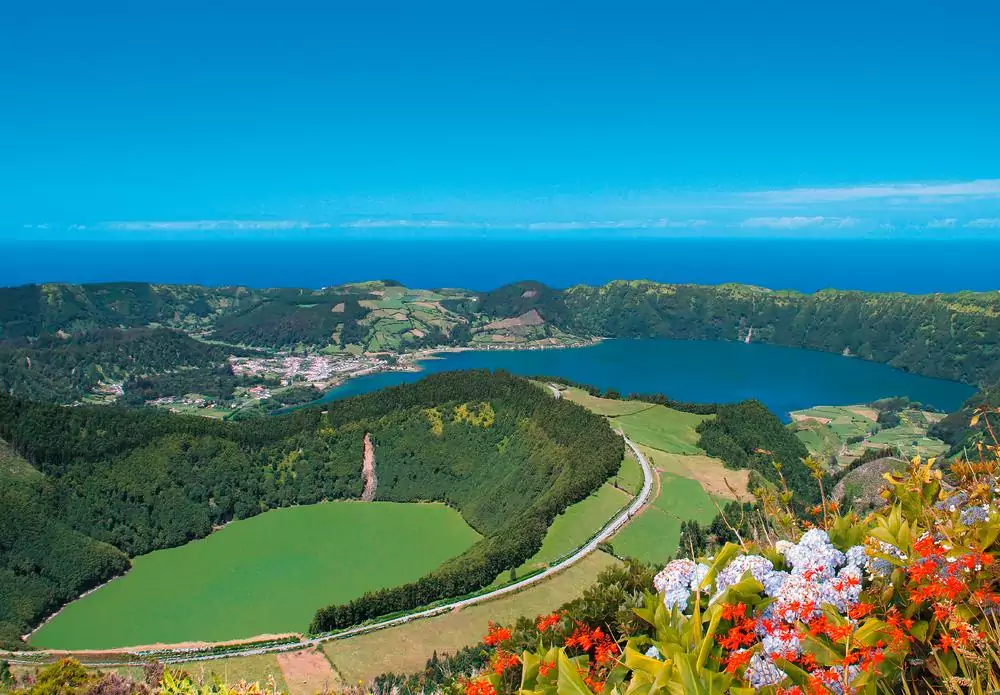 Fast auf halber Strecke zwischen Europa und Amerika liegen die Azoren, neun Inseln von urwüchsiger Schönheit. Umrahmt von wuchernden subtropischen Pflanzen, zeugen tiefblaue Kraterseen, dampfende Quellen und bizarre Lavaströme von dem vulkanischen Ursprung des Archipels. In jeder Hinsicht eine Garantie für reizvolle Wanderungen! Der Golfstrom sorgt auch im Sommer für ein mildes, ausgeglichenes Klima mit Temperaturen um 25 Grad Celsius.