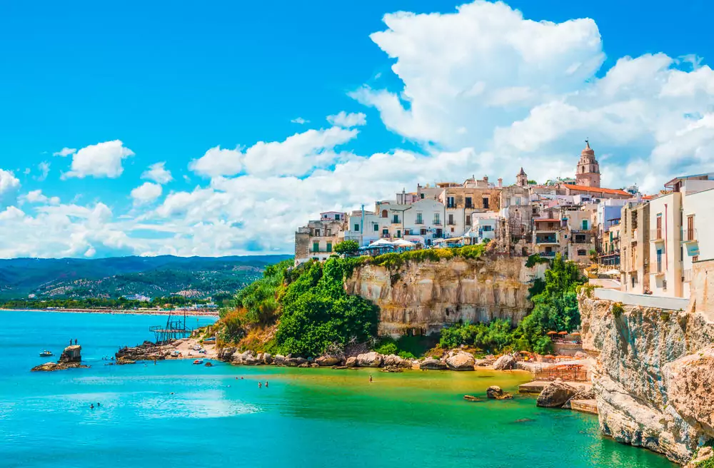 Langer Transfertag in den Norden Apuliens, den Gargano (460 km). Wir passieren unzählige, riesige Haine von Olivenbäumen sowie Weinbaugebiete für einige der berühmten apulischen Weine. Unterwegs besuchen wir das Castel del Monte, im 13. Jh. vom Stauferkaiser Friedrich II. als Jagdschloss erbaut, gibt es mit seinem achteckigen Grundriss und den acht achteckigen Türmen bis heute Rätsel auf. Anschließend Fahrt nach Vieste (5 Ü).