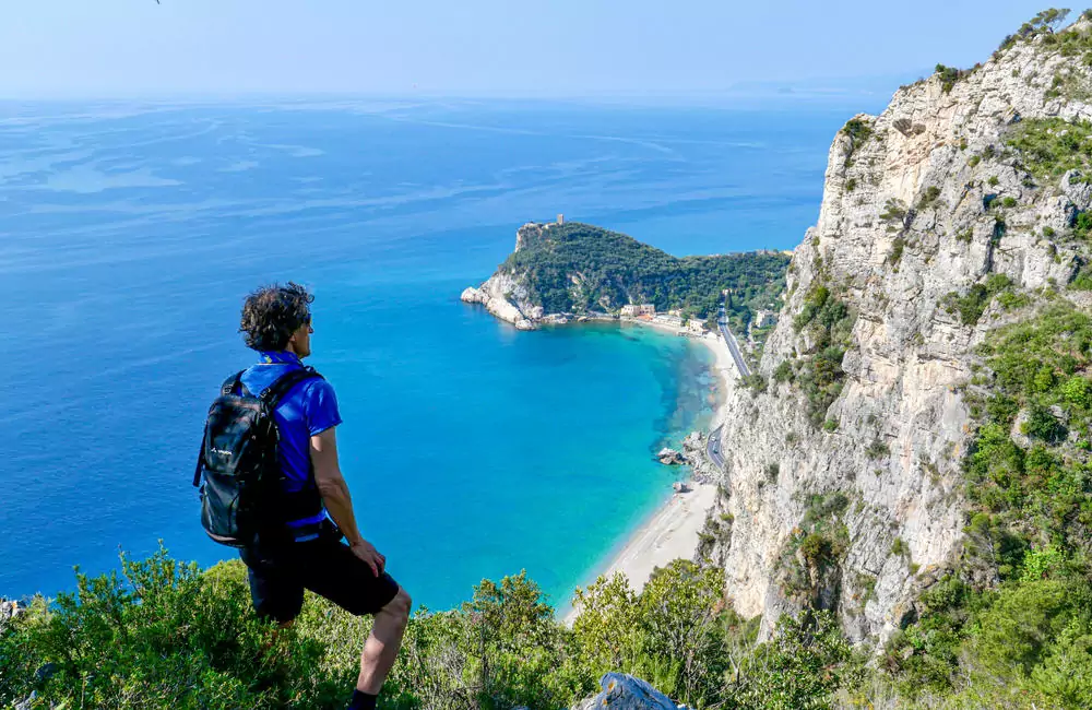 Die Königs-Panorama-Traumtour! Von Varigotti steigen wir zu einem Panoramaweg hinauf, der sich 200 m über dem Ligurischen Meer am Hang entlangschlängelt und uns praktisch den ganzen Tag mit herrlichen Meerblicken belohnt. Doch die allerschönsten Aussichtspunkte erwarten uns erst am Capo Noli: Unter uns stürzen die steilen Felsklippen ins Meer, rechts und links schauen wir auf die Strandbuchten von Malpasso und Noli – grandios! Stell dir vor – ein Picknick vor dieser Traumkulisse. Im Anschluss steigen wir ab zu unserer Bucht in Noli (GZ: 4 Std., +/- 250 m) – Lust auf einen Sprung ins kühle Nass?