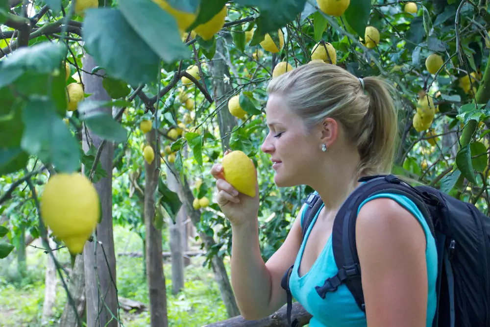 An Zitronenhainen vorbei wandern wir nach Pontone; der Meerblick ist hier unser ständiger Begleiter. Ein versteckter Wanderpfad führt uns zur Ruine der einst mächtigen Burg Scalelle. Nach der Umrundung des Bergrückens schlängelt sich der Pfad über Atrani hinab. Und schon stehen wir mitten in Amalfi auf dem Domplatz: Haus eng an Haus, darüber ragt die bunt gezierte Domfassade. Italien wie aus dem Bilderbuch, wo ist das nächste Café (GZ: 4 Std., + 200 m, - 500 m)?