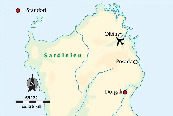 Flug nach Olbia und Bustransfer (ca. 1 1/2 Std.) zu unserer Unterkunft bei Dorgali.