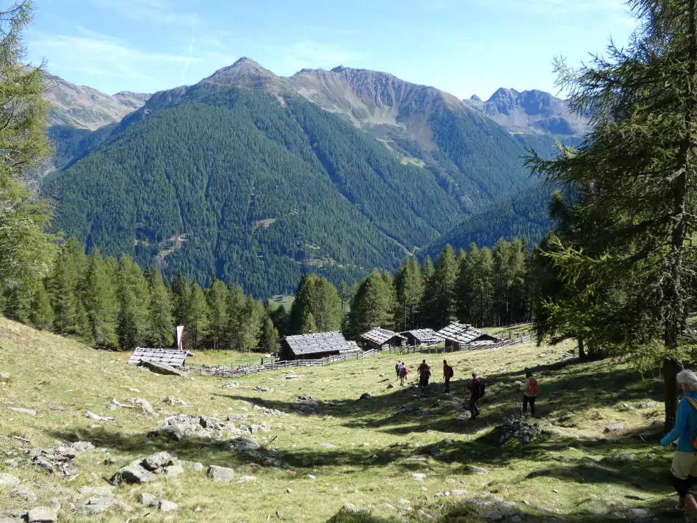 Mit dem öffentlichen Bus fahren wir zum Weißbrunnsee. Am Valschauer Bach entlang steigen wir zur Oberen Weißbrunnalm; der Nagelstein ragt über unseren Köpfen in den blauen Himmel. An seinem Fuß wandern wir zur Fiechtalm, die uns erneut mit Südtiroler Spezialitäten verwöhnt. Abstieg zum See und Rückfahrt zum Hotel (GZ: 3 Std., +/- 450 m).