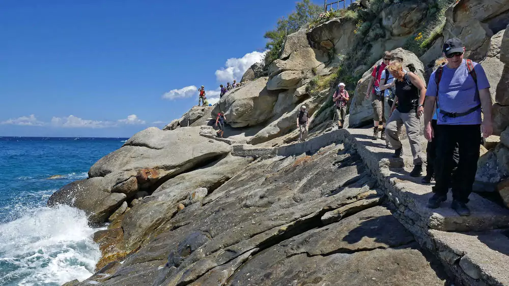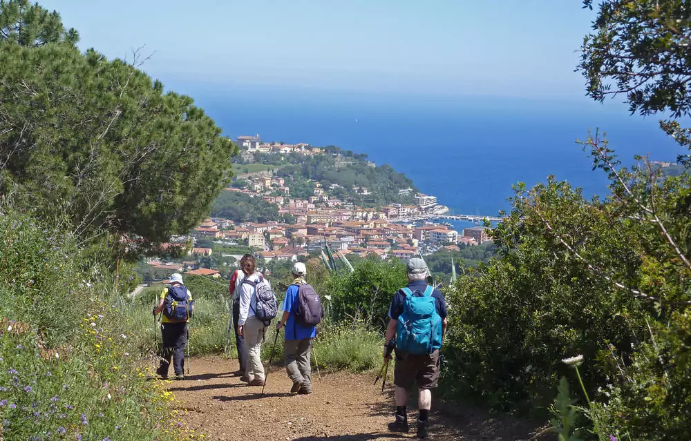 7 Tageswanderungen erschließen uns die schönsten Wandergebiete der Insel. Sie dauern durchschnittlich 4 Stunden, die zu bewältigenden An- und Abstiege betragen durchschnittlich 400 m, einmal auch 600 m. Ein hervorragendes Wegenetz aus Fußpfaden und alten gepflasterten Maultierwegen garantiert genussvolle Wanderungen, wobei wir das tiefblaue Meer fast immer vor Augen haben. An den freien Tagen können wir weitere Wanderungen unternehmen, auf den Spuren Napoleons wandeln, die Inselhauptstadt Portoferraio besuchen, mit der Seilbahn auf den Monte Capanne – mit 1.019 m der höchste Berg der Insel – schweben bzw. hinauf wandern oder es uns einfach nur am Meer gut gehen lassen.