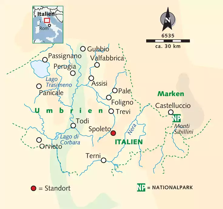 Von bewachsenen Hügeln und Felskuppen blicken uns trutzige und verwinkelte Dörfer entgegen. Städte wie Orvieto, Todi, Gubbio und Perugia sind voll von architekturhistorischen Meisterleistungen. Kleinstädte wie Spoleto und Trevi sprühen vor Charme und Atmosphäre. Und ganz Assisi ist ein einzigartiges Freilichtmuseum, durch dessen sakrale und auch profane Bauwerke der Geist vergangener Jahrhunderte weht. Umbrien – kleine Binnenregion mit großen Highlights!