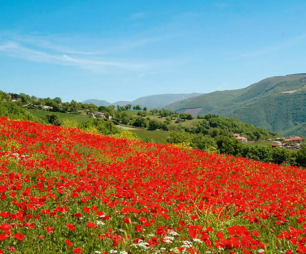 Östlich von Spoleto verläuft die bäuerlich geprägte Valnerina, deren Ursprünglichkeit und Idylle uns zwei Wanderungen wert ist. Wir wandern entlang der Nera zur ehemaligen Benediktinerabtei San Pietro in Valle (GZ: 2 1/2 Std., + 150 m, - 100 m). Am Nachmittag besuchen wir auf einer weiteren Wanderung das wohl schönste Dorf des Nera-Tales, Vallo di Nera, mit Torbögen, kleinen Gassen und mittelalterlicher Atmosphäre (GZ: 2 Std., + 160 m).