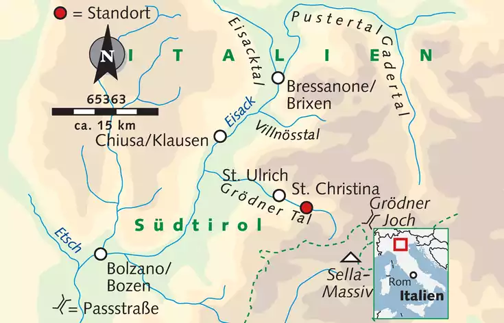 Willkommen in einer der spektakulärsten Landschaften Europas! Das Grödnertal bietet wohl die namhaftesten und hochkarätigsten Gebirgsgruppen der Dolomiten, die seit 2009 UNESCO-Weltnaturerbe sind. Über sattgrüne Almwiesen erheben sich atemberaubende Steilwände, bizarre Felsnadeln und imposante Felsburgen – ein Anblick, der mit seiner dramatischen Schönheit jeden in seinen Bann zieht. Die am Fuß der Felsmassive gelegene Seiser Alm ist die größte Hochweide der Alpen und eröffnet traumhafte Ausblicke auf eine fast schon unwirkliche Gebirgsszenerie. Doch das Grödnertal bietet weit mehr als nur Postkartenidylle: Es ist ein Paradies für sportlich Ambitionierte, die das Abenteuer suchen. Anspruchsvolle Höhenwege, stille Pfade durch blühende Bergwiesen und aussichtsreiche Gipfelmomente – die unzähligen Wandermöglichkeiten, gerade auch für anspruchsvollere Touren, sind hier schier unendlich.