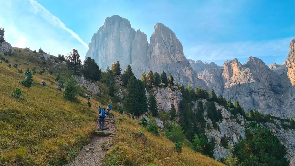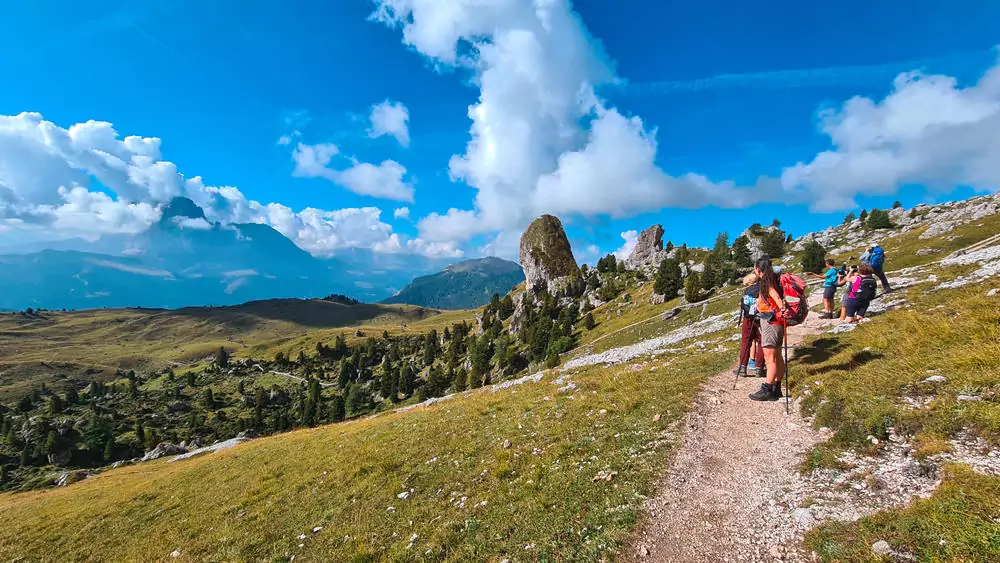 Über schöne Waldwege starten wir vom Hotel aus in Richtung der Kirche St. Jakob. Ein schmaler Pfad führt uns zunächst durch Wald, dann über offenes Gelände bis zum Hausberg von St. Christina, dem Pitschberg – von den Einheimischen liebevoll auch Pic genannt. Das Panorama ist erstaunlich: Ein Rundumblick auf die Wunderwelt des Grödnertals belohnt uns für die Mühen des Anstiegs. Bergab geht es über grüne Almwiesen mit zahlreichen Hütten, die zur Einkehr einladen. Im Anschluss schweben wir per Bergbahn ins Tal (GZ: 5 Std., + 900 m, - 300 m).
