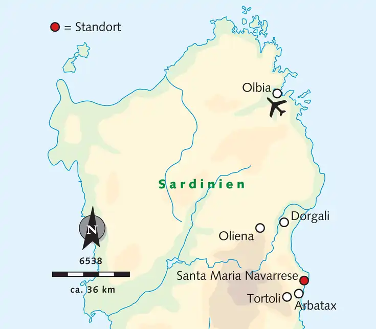 Hotel: Unser Drei-Sterne-Hotel Mediterraneo mit 33 Zimmern bietet uns einen idyllischen Garten mit kleinem Teich und liegt nur wenige Schritte vom einmalig schönen Sandstrand entfernt. Zimmer: mit Fliesenboden, Kühlschrank, Klimaanlage, Flachbild-TV, kostenloses WLAN, Telefon, Föhn und Balkon. Verpflegung: Es wird viel Wert auf landestypisches, italienisch-sardisches Essen gelegt. Lage: Unser Hotel liegt etwa 5 Gehminuten außerhalb von Santa Maria Navarrese. Der Ort ist ein perfekter Ausgangspunkt für Wanderungen im schönsten Küstenabschnitt Sardiniens. Hier findet man zudem Restaurants, Geschäfte, einen kleinen Yachthafen und den langen Strand, der an seinem nördlichen Ende in die kaum noch zugängliche wilde Steilküste übergeht. Transfer: ca. 3 Std. vom Flughafen Olbia