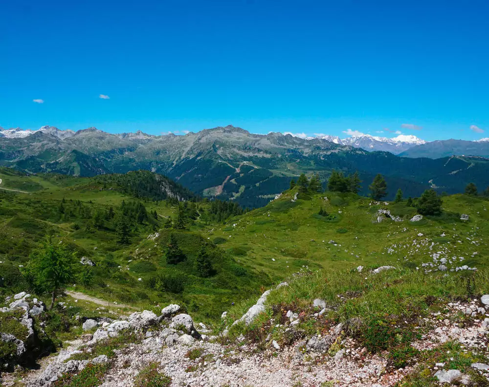 Unsere Einstiegswanderung startet direkt am Hotel und verläuft auf dem Sentiero Nella e Bruno gemächlich ansteigend bis zum Lago Nambino. Auf unserem weiteren Weg zur Malga Ritorto lassen uns die Panoramen nicht mehr los. Nach einer genussvollen Pause mit grandiosem Panorama steigen wir nach Madonna di Campiglio ab (GZ: 3 1/2 Std., +/- 300 m, 1-2 Stiefel).