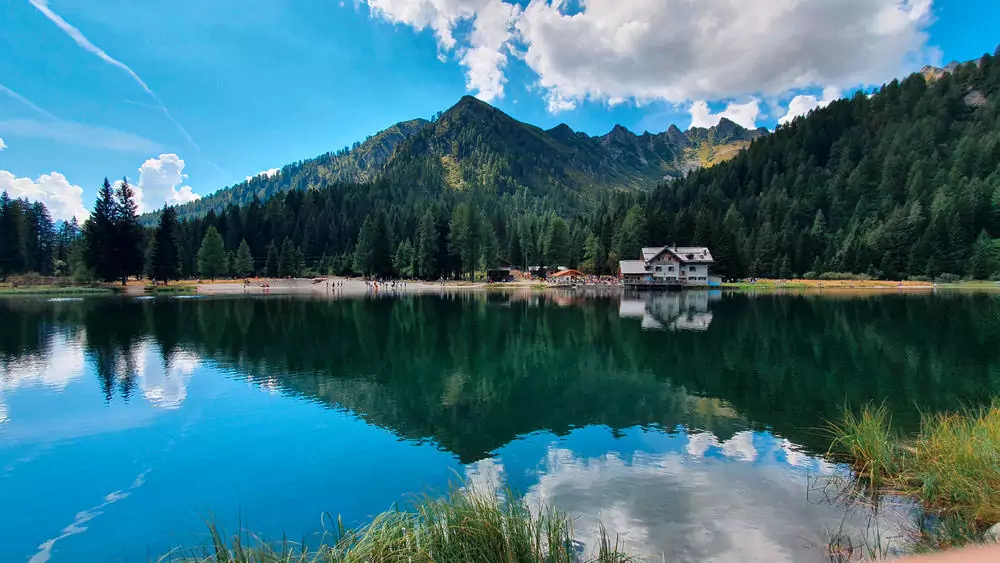 Wir steigen auf zum einsam gelegenen Lago Malghette. Der See liegt traumhaft und lädt trotz seines klirrend kalten Wassers zum Baden ein. Weiter durch eine zauberhafte Hochmoor-Landschaft bis zum Lago Pradalago, von dem aus wir nach Madonna di Campiglio absteigen (GZ: 5 Std., +/- 550 m, 2 Stiefel). Wer möchte, schwebt ab Pradalago mit der Seilbahn ins Tal (fakultativ) und spart sich so im Abstieg 500 Höhenmeter (1-2 Stiefel).