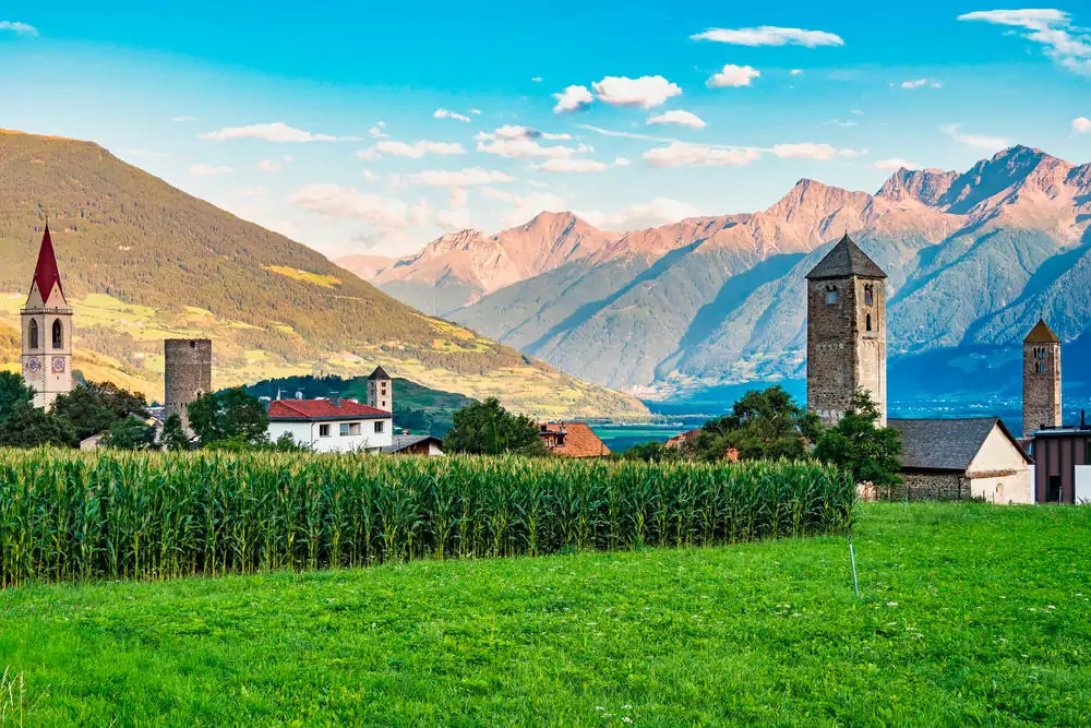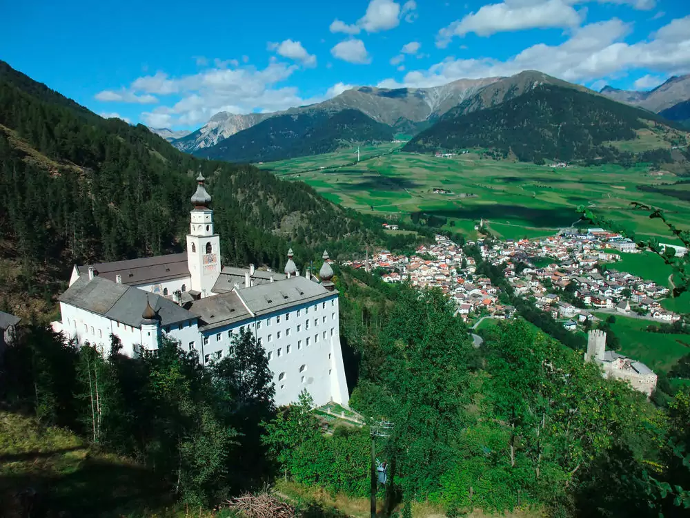 Nach dem Frühstück fahren wir mit Bahn und Bus in Richtung Stilfs Dorf. Am Anfang folgen wir dem Achaikweg und genießen die Aussicht auf das Ortlermassiv. Vorbei an der Burgruine Lichtenberg wandern wir weiter nach Glurns. Die kleine mittelalterliche Stadt mit den vollständig erhaltenen Ringmauern und den drei Tortürmen verzaubert uns mit ihrem Flair. Wir schlendern in Ruhe durch die kleinen Gassen bevor wir uns wieder auf den Rückweg zum Hotel machen (GZ: 4 1/2 Std., + 170 m, - 500 m).