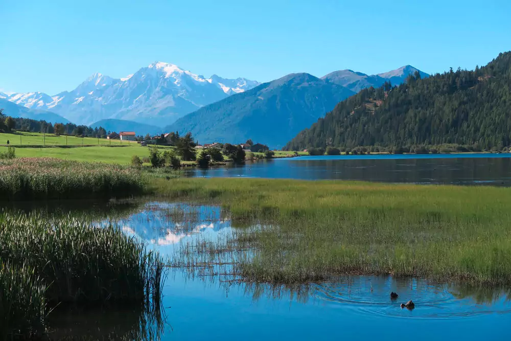 Nach dem Transfer mit Bahn und Linienbus zum Reschensee wandern wir nach San Valentino. Am Ufer des Haidersees entlang folgen wir anschließend dem Weg erst am Hang entlang und später an weiteren Seen vorbei nach Burgeis. Von dort geht es quer durch das Etschtal nach Mals. Hier treten wir die Rückfahrt mit Bus oder Bahn nach Schluderns an (GZ: ca. 4 Std., + 165 m, - 600 m).