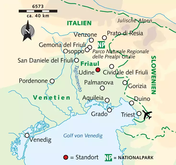 Kaum eine Region Italiens verfügt über solch eine Vielfalt an Natur- und Kulturlandschaften wie Friaul-Julisch Venetien: 2.300 m hohe Friauler Dolomiten, Weinberge, Karstlandschaften und malerische Küsten, fruchtbare Ebenen, Lagunen und Vogelschutzgebiete, lange Sandstrände – das ist Natur pur. Historische Städte und Dörfer sowie prachtvolle Schlösser und Relikte aus der k.u.k.-Monarchie bilden zusammen mit der regionalen Küche und den erlesenen Weinen den kulturellen Rahmen.