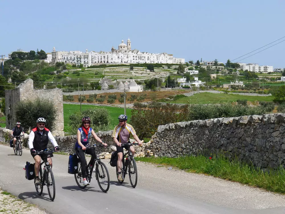 Wir radeln an Olivenhainen und Weinfeldern entlang und passieren das barocke Martina Franca, wo wir eine Olivenölverkostung machen. Weiter geht es über das wunderschöne Locorotondo zu unserem Hotel in Ostuni, der weißen, auf einem Felsen erbauten Stadt. Am frühen Abends ist Zeit um die hübsche Altstadt zu erkunden. (1 Ü/F, A)