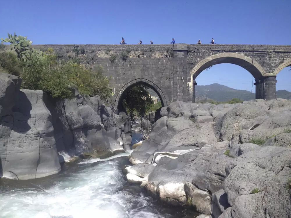 Transfer nach Maletto (ca. 2 Std.). Die spektakuläre Radtour führt rund um die Nordseite des Vulkans Ätna (UNESCO-Weltnaturerbe). Unterwegs können wir die berühmte Alcantara-Schlucht erkunden (fakultativ), bevor wir Fondachello erreichen. (2 Ü/F,A)