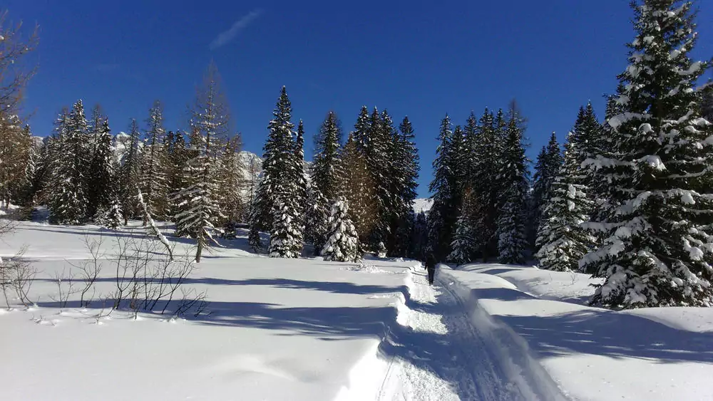 Das Trentino ist die geographische und kulturelle Brücke zwischen dem nördlichen und dem mediterranen Europa. Während man in der Hauptstadt Trento prachtvolle Renaissancebauten bewundern kann, wird das Umland überragt von der majestätischen Kulisse der Brenta-Dolomiten. Im Winter hüllt sich das Val di Sole in sein weißes Schneekleid. Wir stapfen durch die tiefe Stille der Wälder und über die unberührte Schneedecke. Spuren im Schnee von Tieren auf der Suche nach Futter entdeckend. Das Schneeschuhwandern ermöglicht uns auf mühelose Weise, in die Magie der Winterwälder einzutauchen – komm´ mit!