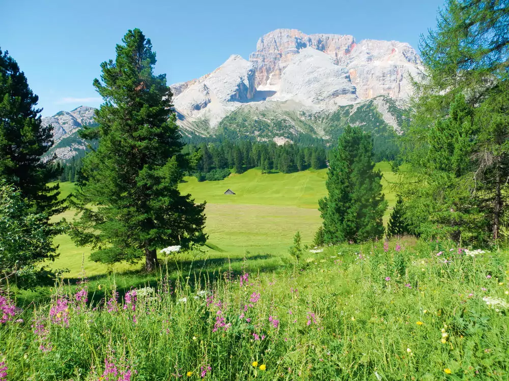 Wir sind sofort begeistert! Und das, bevor wir überhaupt einen einzigen Schritt gemacht haben: Vor uns ragen die Hohe Gaisl (3.146 m), Monte Civetta (3.220 m) und die Cristallo-Gruppe in den Himmel. Ja, die Plätzwiese in den Pragser Dolomiten ist eine von den magischsten der Südtiroler Almen. Kaum zu überbieten? Doch, hinauf zum Strudelkopf! Dieser empfängt uns mit einem Dolomiten-Rundblick, jetzt werden wir echt staunen (GZ: 4 1/2 Std., + 300 m, - 750 m)!