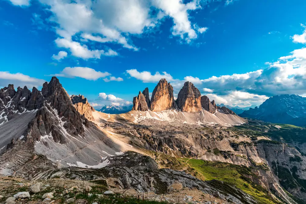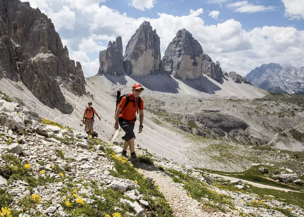 Das Highlight kommt zum Schluss. Von der Auronzo Hütte geht es zum Paternsattel – hier können wir einen ersten Blick auf die Drei Zinnen werfen. Aber wir wollen noch mehr: Vorbei an der Drei-Zinnen-Hütte geht es über den Rienzboden zur Langalmhütte. Hier genießen wir den Face-to-Face-Blick: Drei Zinnen. Das schönste Dreigestirn der Dolomiten liegt direkt vor uns – was für ein unglaublicher Höhepunkt (GZ: 4 Std., +/- 400 m)!
