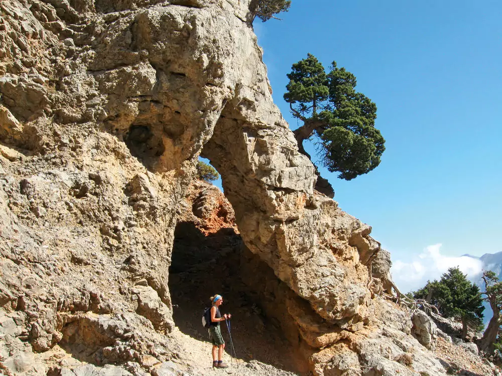 Wir starten an einem 900 Jahre alten Olivenbaum und wandern zunächst durch Oliven- und Orangenhaine in den Talgrund. Wir folgen dem Fluss durch die Topolia-Schlucht mit ihren kleinen Höhlen und steigen am Ende an einer Bergflanke auf (270 m). Oben angekommen, belohnt uns ein grandioser Ausblick auf die Nordküste und die weißen Berge (GZ: 4 1/2 Std., +/- 550 m).