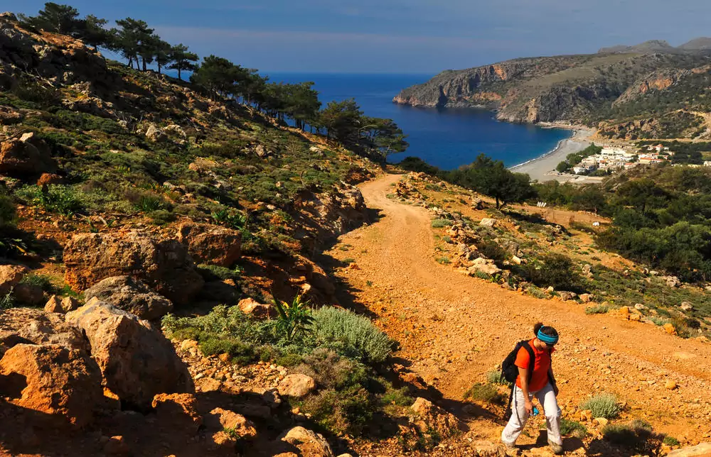 Diese Wanderung beginnt im Bergdorf Anopolis und führt durch die „Aradhena-Schlucht“ an die Küste. Von hier aus wandern wir über das idyllische Dorf Loutro (Dieses Dorf ist nur per Boot oder zu Fuß zu erreichen.) an der herrlichen Küste entlang bis nach Chora Sfakion, dem Hauptort der „Wilden Sfakia“ (GZ: 6 1/2 Std., + 150 m, - 600 m).