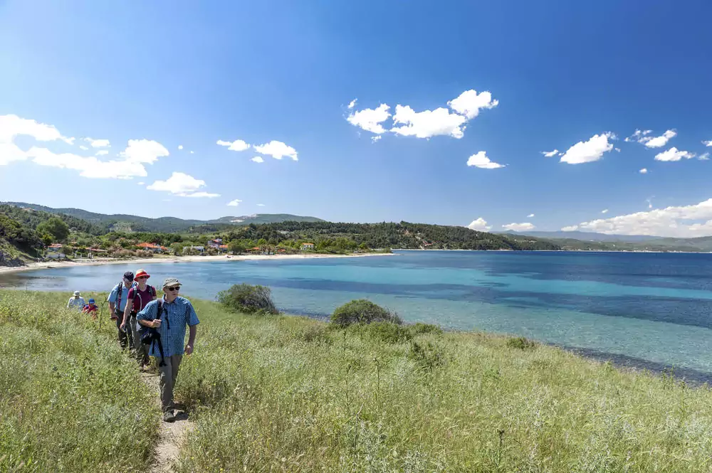 Sieben Wanderungen von 3 bis 5 Stunden Gehzeit mit Höhenunterschieden von max. 350 m bringen uns die interessantesten Landschaften und den Jahrtausende alten Kulturraum Sithonias näher. Einige Wanderungen enden am Strand und ermöglichen, je nach Jahreszeit, ein erfrischendes Bad als Abschluss. Ein Besuch von Thessaloniki, der ehemaligen Kulturhauptstadt Europas, oder eine Bootsfahrt bieten sich fakultativ an.