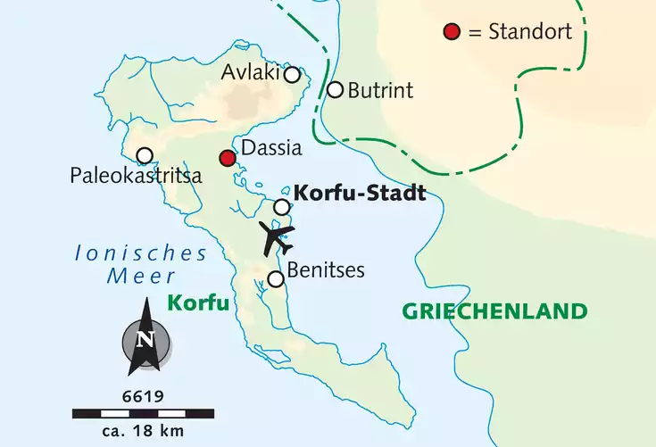 Flugreise nach Korfu und Transfer ins Hotel (40 Min.).