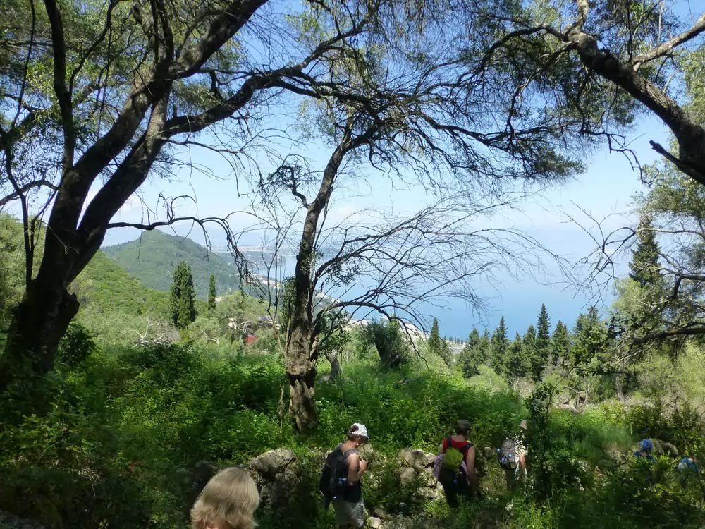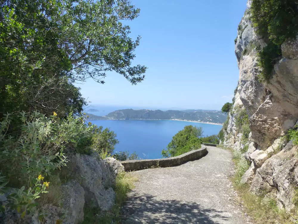 Zunächst wandern wir auf einem alten Steinpfad nach Lakones und Paleokastritsa. Die Panoramablicke zählen zu den schönsten in Europa (GZ: 1 1/2 Std., + 90 m, - 490 m). Das alte, auf einem Felsvorsprung gelegene Kloster Theotokos ist allemal einen Besuch wert, bevor wir von der Panoramastraße "Bella Vista" weitere unbeschreibliche Aussichten genießen. Über alte Wege geht es weiter bis zum langen Sandstrand von Agios Georgios (GZ: 2 1/2 Std., - 330 m).
