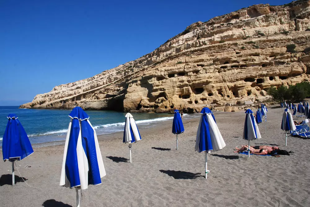 An den Felsklippen über dem Komos-Strand beginnt unsere aussichtsreiche Wanderung, die am Strand von Matala mit seinen vermutlich über 8.000 Jahre alten Wohnhöhlen endet (GZ: 2 Std., +/- 100 m). Wer möchte, kann weiter bis zum Red Beach wandern (GZ: 50 Min., +/- 100 m). Anschließend besichtigen wir in Festos die Ruinen einer weiteren minoischen Palastanlage. Ebenfalls in der Messara-Ebene liegt Gortys, die ehemalige römische Hauptstadt Kretas. Hier sehen wir unter anderem die Titus-Basilika und die „Große Inschrift“, den bislang ältesten aufgefundenen Gesetzescodex Europas.