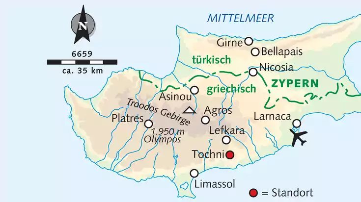Die Landschaften der Insel erleben und die Sonne genießen, gut essen, wandern und kochen! Das planen wir im Dorf Tochni an der Südküste Zyperns. Unsere gemütlichen traditionellen Appartements sind stilvoll und komfortabel. Auf vier Wanderungen erkunden wir spektakuläre Ecken des Südens. Auf einem Tagesausflug in den Norden der Insel lernen wir die türkisch-zypriotische Welt kennen, in der – nicht nur beim Essen – das gemeinsame Herz aller Zyprioten schlägt!