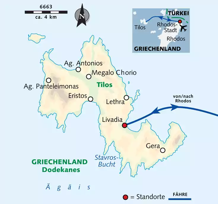 Wo lebten die letzten Elefanten Europas? Auf der winzigen Insel Tilos! Bis vor 4.000 Jahren war hier die Heimat der Zwergdickhäuter. Heute ist der große Vogelreichtum etwas ganz Besonderes, eine erfreuliche Folge von 25 Jahren Jagdverbot. Die Insel ist ein Naturschutzgebiet mit über 400 Pflanzenarten. Das Umweltbewusstsein der Bewohner zeigt sich auch in der traditionellen Bauweise und der Erhaltung alter Eselspfade. Die Uhren ticken hier anders, eine wohltuende Langsamkeit weit weg von der Hektik des Alltags breitet sich aus. Die Wanderungen in urwüchsiger Landschaft zu Kirchen, Geisterdörfern und traumhaften Buchten sind Genuss pur!