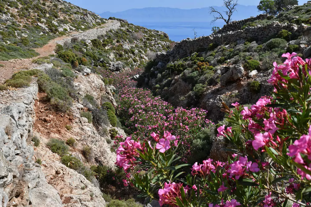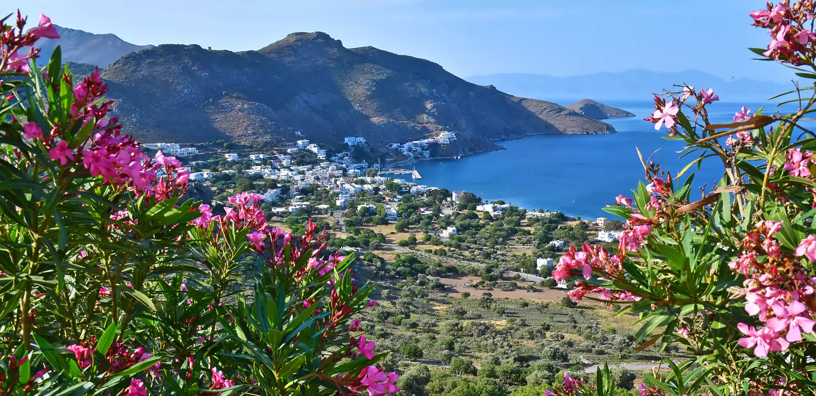 Am schönsten Kloster der Insel, Agios Panteleimonas, startet die Wanderung auf einem Pfad rund um den Krialos (571 m) mit Panorama über die Nachbarinseln und die türkische Küste. Über den Hauptort Megalo Chorio wandern wir hinab durch Tilos´ „Garten“ mit Feldern, Blumenwiesen und Obstbäumen zum Strand von Eristos (GZ: 3 1/2 Std., + 100 m, - 250 m).