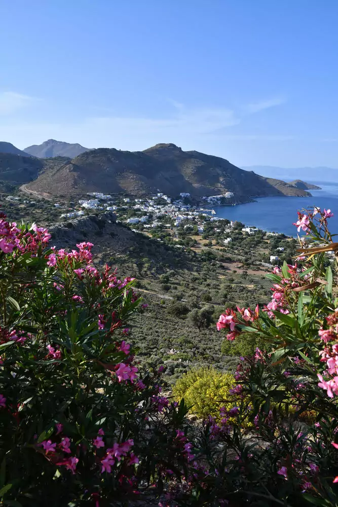 Ab der kleinen Kapelle Agios Ioannis folgen wir dem wohl schönsten Fußweg der Insel. Er verläuft mit wunderbaren Aussichten hoch über dem Meer zum verlassenen Dorf von Gera. Ein Bummel durch die Ruinen lohnt sich, bevor wir zu einem Pass aufsteigen. Zurück nach Livadia erwartet uns ein toller Blick über die wilde und karge Südküste bei unserem Abstieg (GZ: 4 1/2 Std., +/- 300 m).