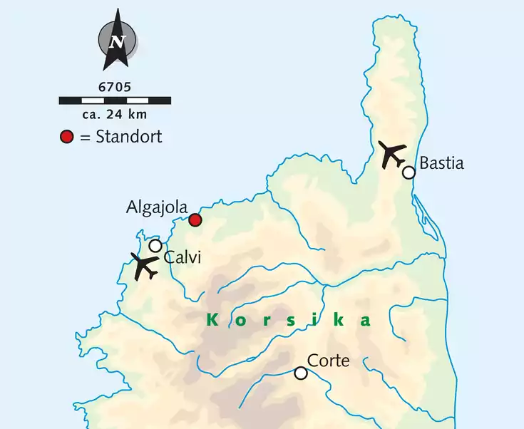 Hotel: Unser bewährtes Hotel L’Ondine verfügt über 60 Zimmer in verschiedenen Gebäuden, die um einen kleinen Swimmingpool angeordnet sind. Das Meer und der lange Sandstrand liegen direkt vor der Tür. Zimmer: einfach eingerichtet und ausgestattet mit Telefon, Sat-TV, WLAN und Föhn Verpflegung: Frühstück und dreigängiges Abendessen im Hotelrestaurant mit Panoramablick über das Meer Lage: im Nordwesten Korsikas in Algajola, einem kleinen Badeort mit einem herrlichen, weiten Sandstrand und bescheidenen touristischen Einrichtungen wie Eiscafés und einer Dorfbar