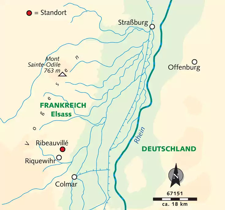 Das Elsass ist der Inbegriff einer romantischen Landschaft: liebliche Weinberge vor den rauen Höhen des Vogesenkamms, malerische Fachwerkdörfer, mit Efeu berankte Burgruinen und blühende Parklandschaften. Darüber hinaus die Städte Colmar und Straßburg, voller Geschichte und reich an Kunstschätzen. Und auf unseren Wegen ist die nächste „Winstub“ immer in der Nähe, um die elsässische Küche und den hervorragenden Wein zu genießen.